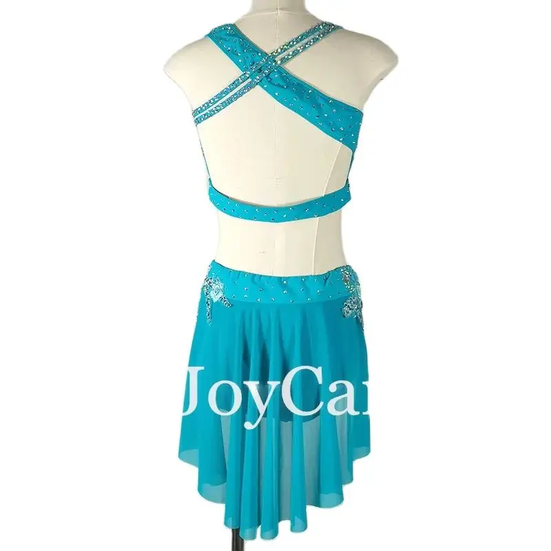 • JoyCan Lyrical Dance Dress Blue Jazz Dance Costume Pole Dancing Clothes Girl Performance Training