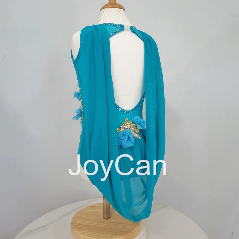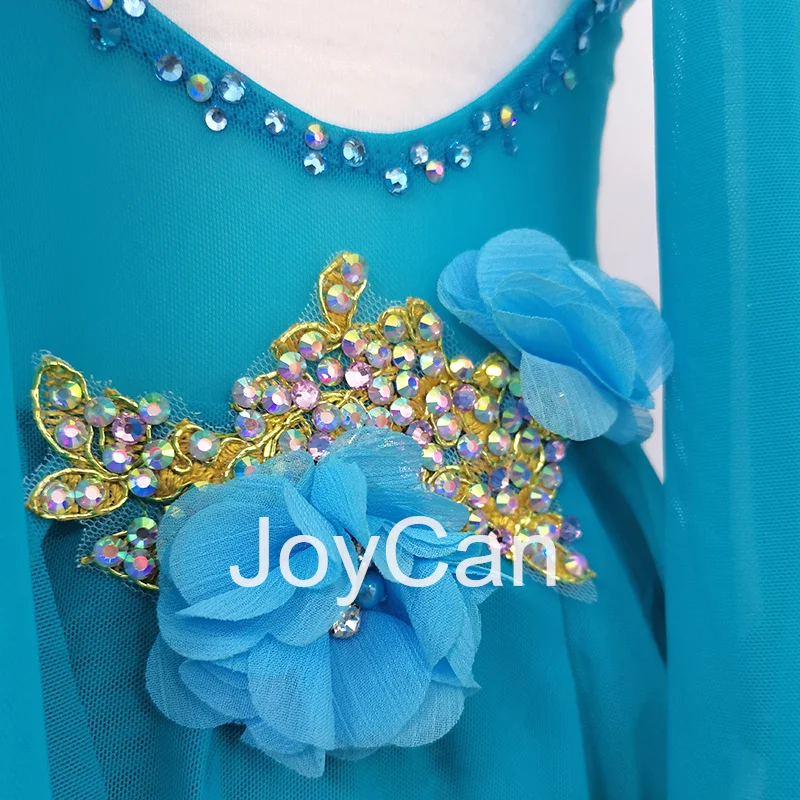 • JoyCan Lyrical Dance Dress Blue Jazz Dance Costume Pole Dancing Clothes Girl Performance Training