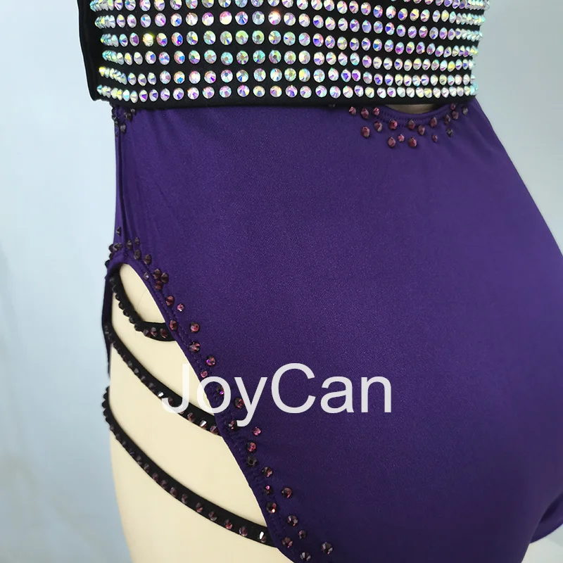 • JoyCan Lyrical Dance Dress Dark Purple Jazz Dance Costume Pole Dancing Clothes Girl Performance Training