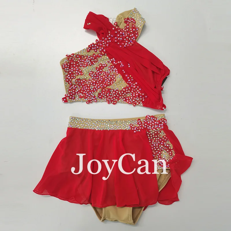 • JoyCan Lyrical Dance Dress Red Jazz Dance Costume Pole Dancing Clothes Girl Performance Training
