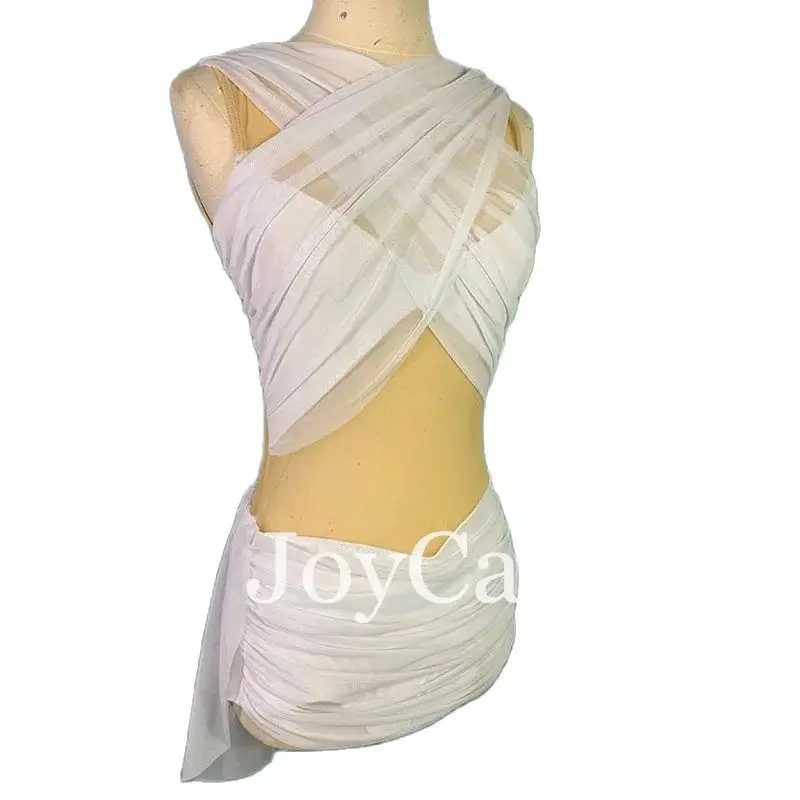 • JoyCan Lyrical Dance Dress White Jazz Dance Costume Pole Dancing Clothes Girl Performance Training