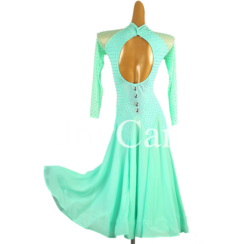 Introducing our stunning Green Latin dress, a captivating and elegant addition to your wardrobe. This long skirt is designed to make you stand out with its unique and eye-catching features. The vibrant green color exudes a sense of freshness and vitality, while the flowing silhouette adds a touch of grace and sophistication to your look. One of the most striking elements of this skirt is the intricate diamond detailing on the chest, adding a touch of glamour and sparkle to the overall design. The placement of the diamonds draws attention to the upper body, creating a flattering and alluring focal point. Whether you're dancing the night away or attending a special event, this embellishment is sure to make you shine and feel like a true star. Crafted with high-quality materials, this Latin skirt is not only visually stunning but also comfortable to wear. The fabric drapes beautifully and moves fluidly with your body, allowing you to move with ease and confidence. The long length of the skirt adds a sense of drama and elegance, making it a perfect choice for formal occasions or performances. Versatile and timeless, the Green Latin Skirt can be paired with a variety of tops and accessories to create different looks. Whether you opt for a sleek and sophisticated blouse or a more playful and flirty crop top, this skirt will effortlessly elevate your style and make a statement wherever you go. Make a bold and unforgettable impression with our Green Latin Skirt. Whether you're a dancer looking for the perfect performance attire or simply want to add a touch of glamour to your wardrobe, this skirt is a must-have piece that will leave a lasting impression. Embrace the beauty and allure of Latin dance-inspired fashion with this exquisite and enchanting skirt.